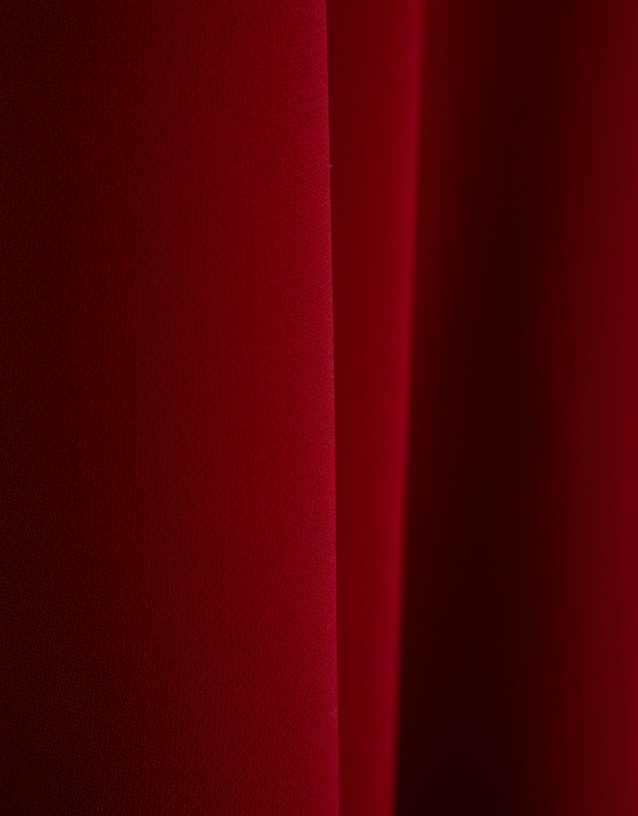 Description Red crepe midi dress. V-neck front and back, fitted bodice with sewn-in waist seams and flared skirt. Concealed side zip fastening. Composition 100% polyester Care Instructions Hand wash only, do not rub. Do not bleach. Maximum temperature 110ºC. Dry clean with perchloroethylene. Do not tumble dry.