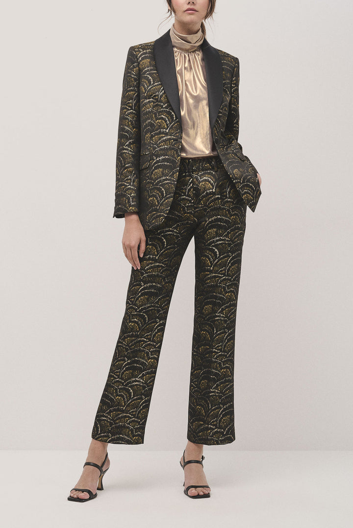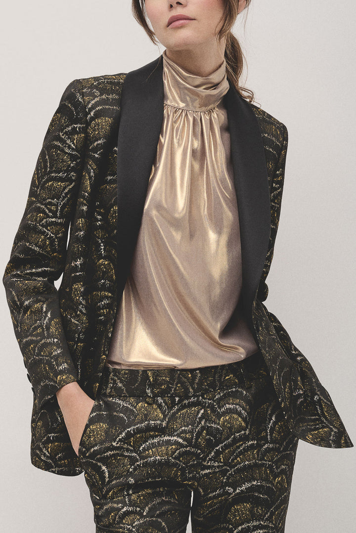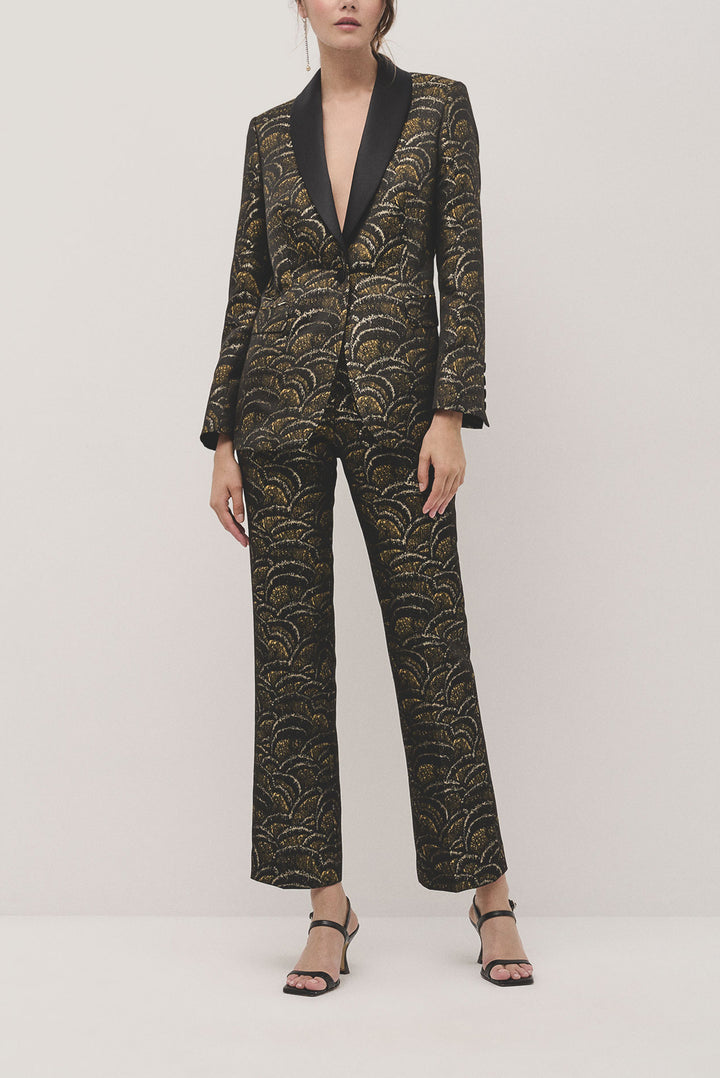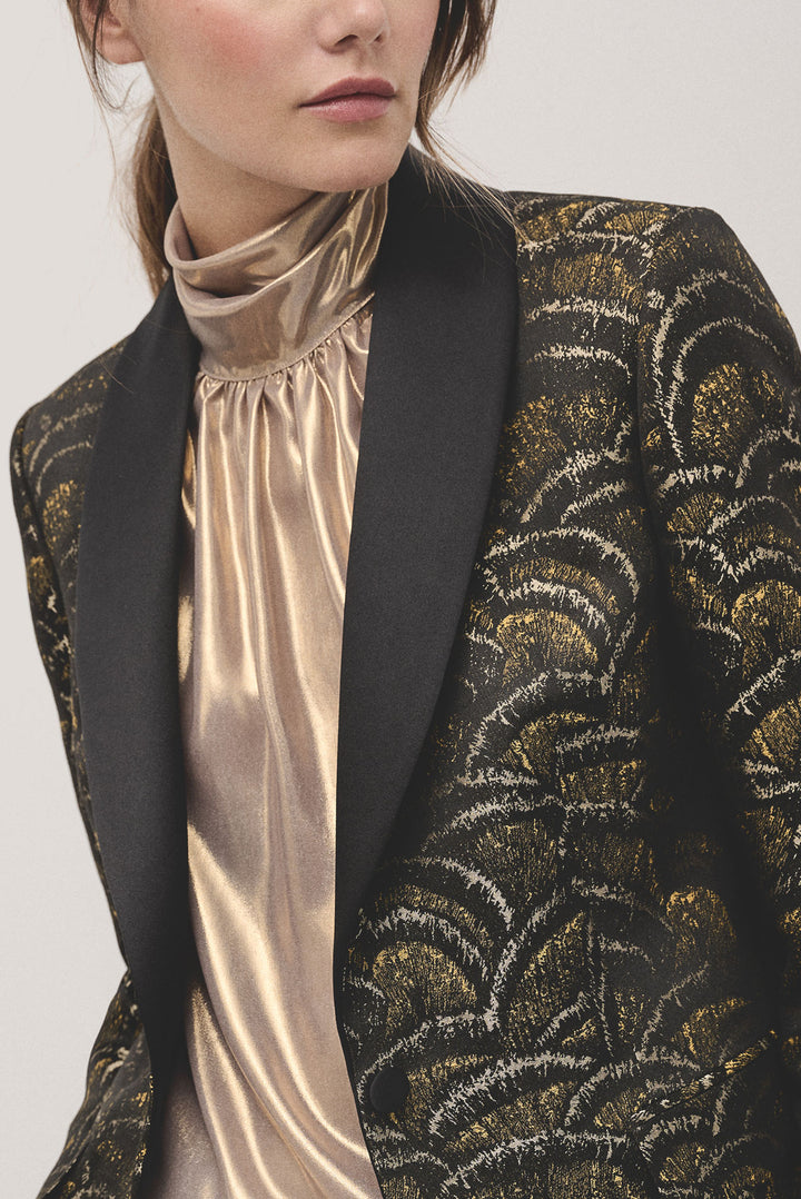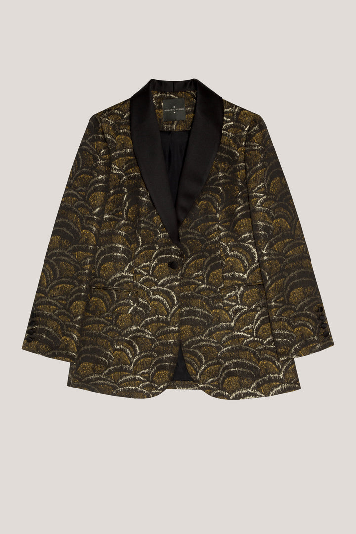 Golden wave jacquard tuxedo jacket with one button