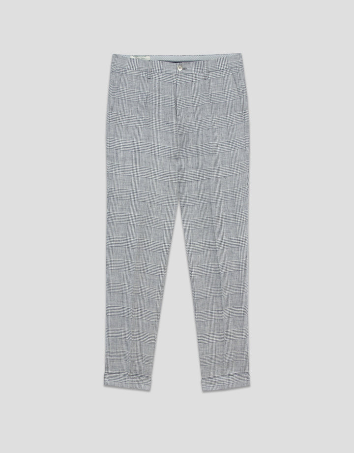 Linen Pleated Trousers With Grey And Blue Checks